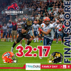 Mit dem Sieg beim Tabellenzweiten aus Gießen, konnten sich die Razorbacks die Meisterschaft in der Regionalliga Anfang Juli vorzeitig sichern und haben nun die einmalige Chance mit dem zehnten Sieg im zehnten Spiel die Saison mit einer makellosen Bilanz abzuschließen. Schaut man auf die Tabelle sollte die Aufgabe für den Meister machbar sein. Die Trier Stampers stehen mit drei Siegen und sechs Niederlagen auf dem siebten Tabellenplatz. Ravensburgs Headcoach Thomas Miller nimmt den Gegner dennoch sehr ernst: „Trier hat sich mit einem Sieg in der letzten Woche die Chance auf den Klassenerhalt gewahrt und wird gegen uns alles geben um diese Chance zu nutzen.“ Seine Mannschaft sei trotz der vorzeitigen Meisterschaft heiß auf das Spiel am Rutensamstag, so Miller weiter. Bei den Oberschwaben fehlen, abgesehen von den Langzeitverletzten, nur wenige Spieler. Dafür müssen die TSB-Footballer erstmals in der Saison auf den US-amerikanischen Trainer Gray Levy an der Seitenlinie verzichten. Dieser reiste am vergangenen Wochenende zurück nach Nevada, um sein erstes Fachbuch über American Football zu promoten. Geht es in diesem Werk um Football speziell in der Hochburg Texas, nutzte Levy die Zeit in Ravensburg für sein zweites Buch. Dieses wird die stark wachsende Randsportart American Football in Europa thematisieren. Levy trainierte nicht nur den Angriff der Razorbacks, er nahm sich auch viel Zeit für die Weiterentwicklung des deutschen Trainerstabs.