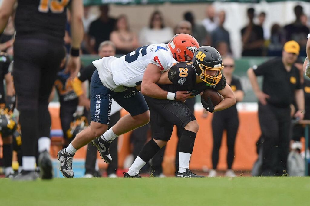 Die Münchner gaben nicht auf, versuchten immer wieder Punkte zu erzielen. Doch die Verteidigung der Oberschwaben blieb wachsam. Wieder in Ballbesitz erhöhten die Razorbacks mit einem Pass auf Linus Marquardt auf 32:17. Die anschließende Two-Point-Conversion misslang.