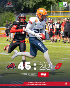 Im folgenden Drive nutzten die ifm Razorbacks die verbleibende Spielzeit von 4:25 Minuten, um den Sieg zu sichern, ohne dem Gegner noch eine Chance auf Punkte zu geben. Dies gelang und die Razorbacks gewannen nach hartem Kampf mit 29:22. Damit stehen die Oberschwaben nun auf Platz 2 der Süd-Staffel und können diesen aus eigener Kraft verteidigen, sollten die beiden kommenden Spiele ebenfalls gewonnen werden. Das nächste Spiel gegen die Saarland Hurricanes findet am 24.08.2024 im TeleData Stadion statt. Tickets für das letzte Heimspiel der regulären Saison 2024 sind online erhältlich unter https://dev.ifm-razorbacks.de/tickets