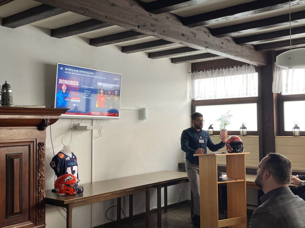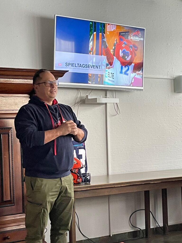 Mit dem Neujahrsempfang mit Sponsoren und Partnern haben die ifm Razorbacks Ravensburg am vergangenen Samstag den offiziellen Startschuss für die Saison 2023 gegeben. Rund 40 Vertreter und Vertreterinnen der Sponsoren, Partner und auch der beiden Städte Ravensburg und Weingarten fanden sich am Samstagvormittag in der Gaststätte „Halbzeit“ am TSB Gelände ein. Nach einer Begrüßung durch den frisch Wiedergewählten Präsidenten des Fördervereins der Razorbacks – Günter Staud – gab der sportliche Leiter Oliver Billstein einen Einblick in die kurz und mittelfristige sportliche Vision der American Footballer aus dem Schussental. Mit dem Coaching Team um Headcoach Sascha Brändle, Offense Coordinator Clayton Turner und Defense Coordinator Wojciech Andrzejczak wird der Fokus auf der Ausbildung über 30 Trainer der ifm Razorbacks liegen. Ziel ist es eine Durchgängigkeit der Teams von der U11 bis zum 1. Liga Team zu erarbeiten und dabei eine sehr hohe Qualität der Trainer zu gewährleisten.