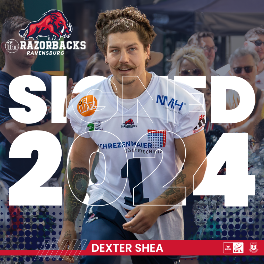 Jüngst ist auch der Kanadier Dexter Shea angereist. Shea kennt die GFL bereits, spielte er doch von 2022 – 2023 für die Ingolstadt Dukes. Dort gingen 44 Solo-Tackles, 4 Interception und ein Forced Fumble auf das Konto des Defensive Backs. Da Shea nie für ein College spielte, fällt er nicht unter die Import-Regelung der GFL, wonach nur zwei nicht-europäische Ausländer gleichzeitig auf dem Feld stehen dürfen. Das macht ihn für die Razorbacks vielseitig einsetzbar.