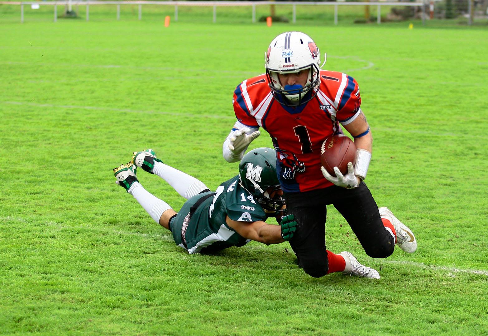 Spät im Spiel hatte sich das Ravensburger Team noch nicht geschlagen gegeben und erzielte noch einen Lauftouchdown über Marco Roller (#1), mit anschließend gefumbelter two point conversion zum 34-25.