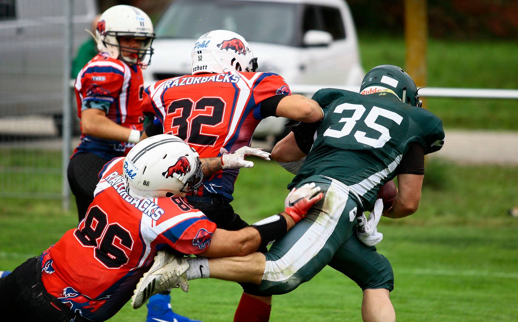 Obwohl die Razorback Defense sich auf ein laufstarkes Offenburger Team eingestellt hatte, war der Lauf leider nicht wirklich zu stoppen. Am Ende des nächsten Drives sollte es also auf Grund dieser Tatsache und starken Runs 14:13 für das Heimteam stehen.