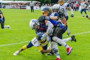 Dagegen wütete die Ravensburger Angriffsabteilung. Running Back Stephen Spagnuolo, Wide Receiver Alexander Borgmann sowie zweimal Quarterback Garret Colao füllten das Ravensburger Punktekonto mit weiteren Touchdowns auf. Ein Sonderlob verteilte Thomas Miller an seine Offensive-Line. „Sie haben einen Riesenjob gemacht“, sagte der Trainer. „Sie haben die Löcher für die Läufe gerissen und Garret (Colao, Ravensburgs Quarterback, d. Red.) viel Zeit verschafft.“