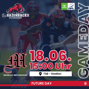 Nach dem 30:24 (14:7, 3:7, 0:7, 13:3) in der hessischen Landeshauptstadt haben die Razorbacks nach Abschluss der regulären Saison einen Sieg mehr als Saarland Hurricanes und die Straubing Spiders auf dem Konto. Als GFL2-Südmeister kämpfen sie nun in der Relegation gegen die Kirchdorf Wildcats (Tabellenletzter der GFL) um den achten und letzten Platz in der Südgruppe des Football-Oberhauses. Und es soll diesmal besser ausgehen als in der vergangenen Saison, als der Meister von 2018 an den Stuttgart Scorpions scheiterte. Doch daran verschwendeten die Ravensburger nach ihrem Sieg keine Gedanken.