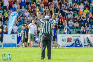 Im Vorfeld des Super Bowl liesen wir es uns nicht nehmen, durch die von der Ravensburger Marketingagentur Storywings erstellte Neuinszenierung unserer Marke für Furore zu sorgen. Unser Abteilungsleiter Frank Kienzle stellte sich gemeinsam mit Florian Dietrich, einem der beiden Geschäftsführer von Storywings auf die Bühne und erklärte in einer emotionalen Ansprache, wie wir uns in den letzten 30 Jahre entwickelt haben, mit wie viel Schweiß und Herzblut er diese Jahre miterlebt hat und welche Widrigkeiten überwunden werden mussten, um heute dort zu stehen, wo man uns aktuell antrifft. In der zweiten deutschen Bundesliga – der GFL 2.