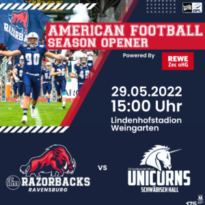 51 Touchdowns, über 4000 Yards an Pässen in einer Saison und damit bester Quarterback in der Liga. Das sind die beeindruckenden Statistiken von Garrett Dellechiaie aus der Saison 2019. Der Rest ist Geschichte. Mit 10 Siegen und nur zwei Niederlagen schafften es die Razorbacks ihren Titel von 2018 „Meister GFL2 Süd“ zu verteidigen und sich für die Relegation zu qualifizieren. Anders als noch 2018 gegen Stuttgart gewannen die Ravensburger diese Spiele gegen die Kirchdorf Wildcats 2019 deutlich und spielen somit in diesem Jahr in der GFL1.