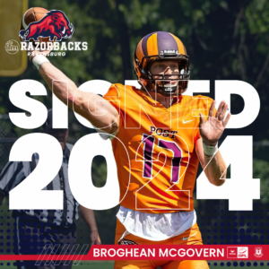 Im strömenden Regen trafen in Rothenburg zwei Teams aufeinander, die dringend Siege gegen den drohenden Abstieg benötigen. Durch eine engagierte Mannschaftsleistung behielten die Oberschwaben die Nerven und konnten sich mit nur einem Punkt Unterschied durchsetzen. “Das Team wollte den Sieg und das hat sich letztlich ausgezahlt”, ist sich Headcoach Thomas Miller sicher. “Kevin Kienzle und Andrew Hill haben effektiv zusammengespielt und waren somit ein echter Pfund in der Offense.” Auch Ravensburgs Neuzugang Keith Alondo Smith zeigte direkt sein Potential und unterstrich mit einem 105 Yard-Lauf nach einer Interception seine Verpflichtung. “Keith hat am Sonntag bei uns unterschrieben, ist diese Woche aus Baltimore angereist und kam am Samstagvormittag am Flughafen in Frankfurt an. Nur ein paar Stunden später stand er bereits auf dem Platz. Hut ab vor dieser Leitung”, freut sich Razorbacks-Chef Frank Kienzle. Mit zwei Siegen aus sechs Spielen stehen die Razorbacks auf Platz 6 der 2. Bundesliga.